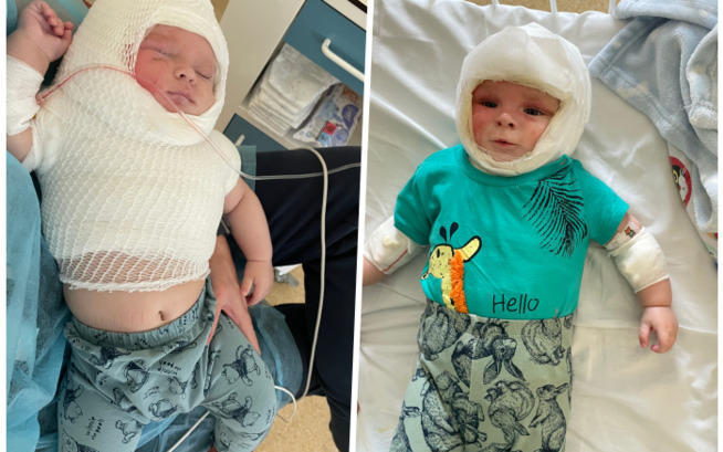 By the time they reached the hospital, Marcel’s body was covered in burns — 30% of his tiny frame