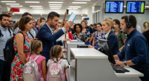 Karen took the tickets, her fingers slow, her eyes flicking to Brad, who smirked, his headset now off, his attention fixed on the family. “These… don’t look right,” Karen said, her voice low, her smile gone, her words laced with insinuation. “First class is highly selective. We’ve had issues with… discrepancies before.” She scanned the tickets, her scanner beeping green, confirming their validity, but her expression hardened, her hand gesturing to a side area. “Please, wait there. We’ll sort this out.”