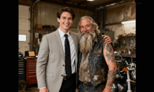 Ethan joined a luxury car design company, living among the elite, rarely mentioning his past. When asked about family, he’d say his parents were no longer around. Mike attended Ethan’s graduation, wearing a suit paired with motorcycle boots, but Ethan introduced him as a “family friend” out of embarrassment in front of colleagues. Mike stayed silent, gave him a tight hug, and muttered, “Proud of you, son,” before riding home alone.